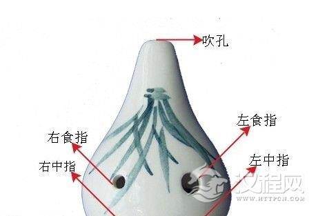 中指分别按住正面下两孔。双手无名指,托住陶笛的下方用来稳定陶笛,这样在指孔全放开时,陶笛不会因此而滑落。