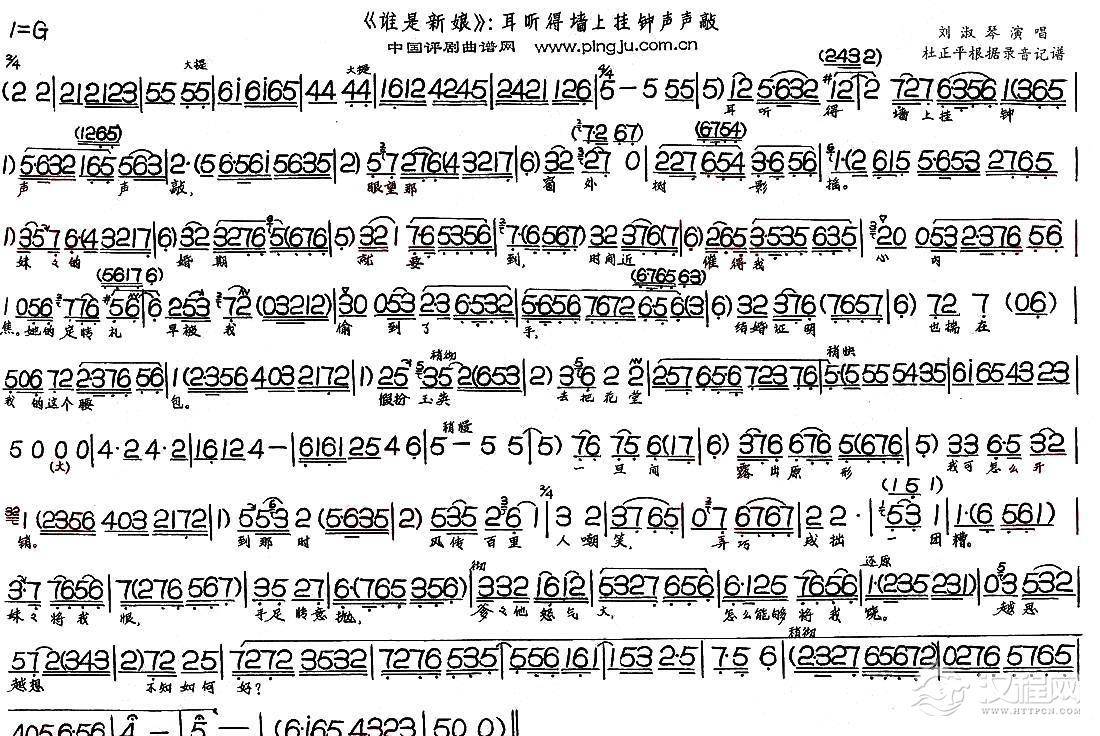 戏曲曲谱掩房门穿嫁衣初试新装(《谁是新娘》选段)