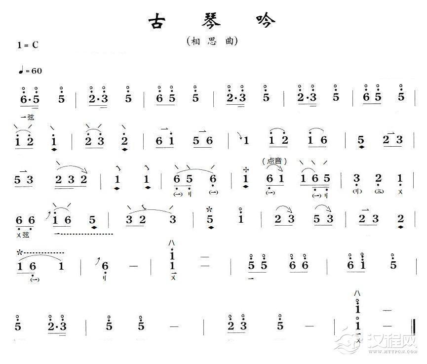 平沙落雁 (古琴减字谱,夹钟均,春草堂琴谱)