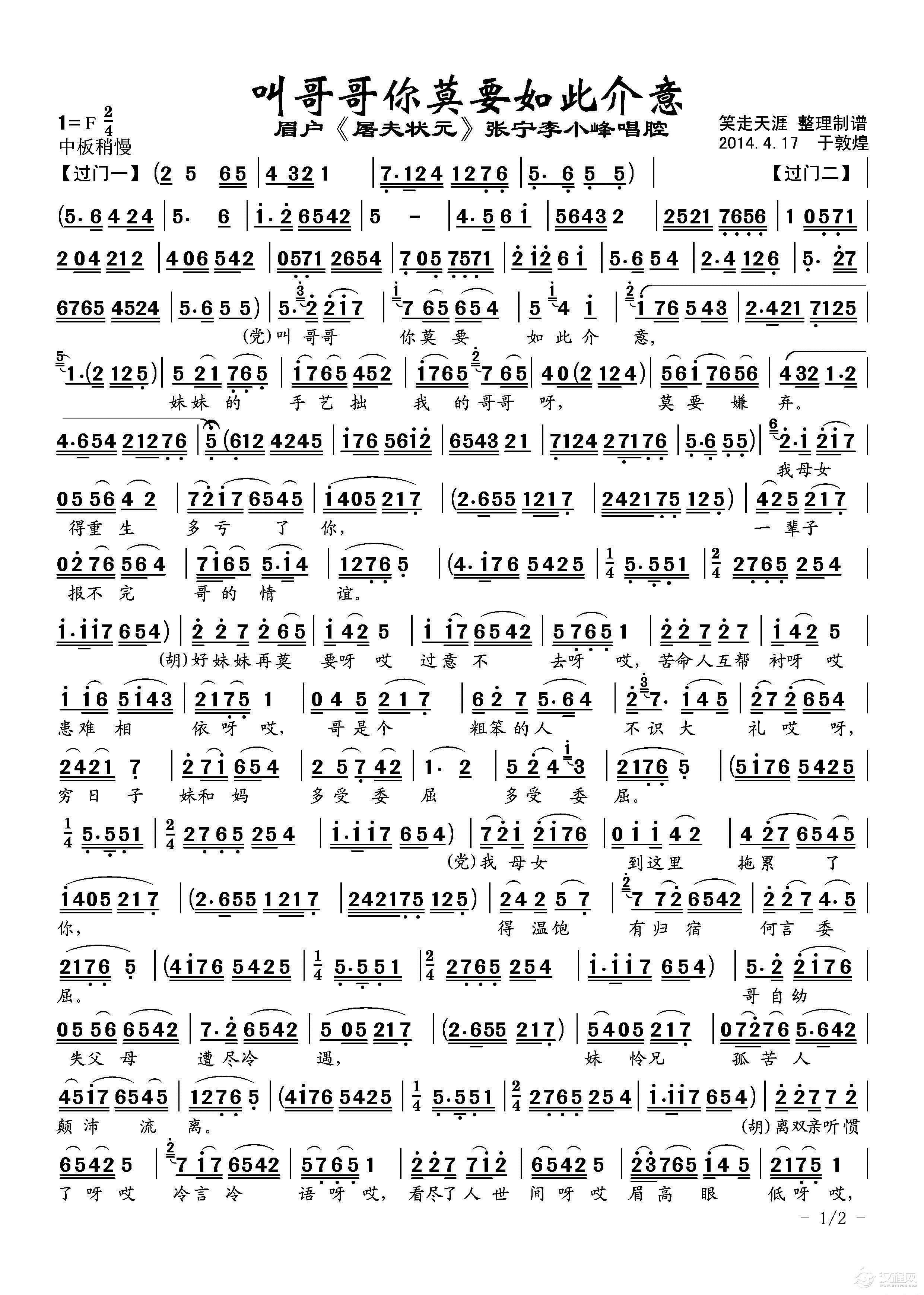 戏曲曲谱[粤剧] 胡不归之慰妻