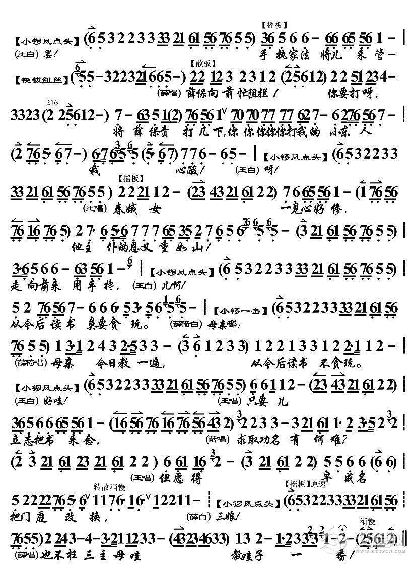 戏曲曲谱小东人下学归言必有错(《三娘教子》选段、琴谱)