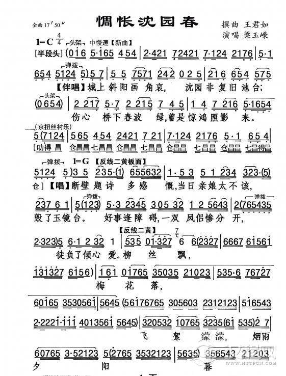 戏曲曲谱[粤剧] 啼笑姻缘之送别