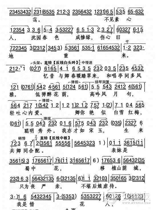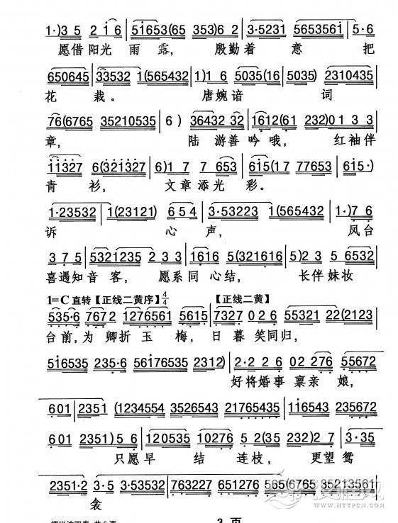 戏曲曲谱你听三两诉诉苦因(《陈三两》选段)