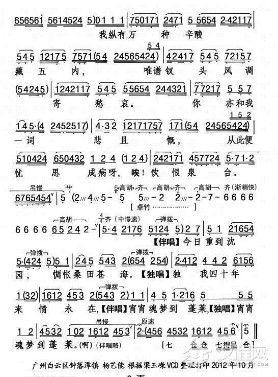 戏曲曲谱[粤剧] 浔阳江上浔阳月