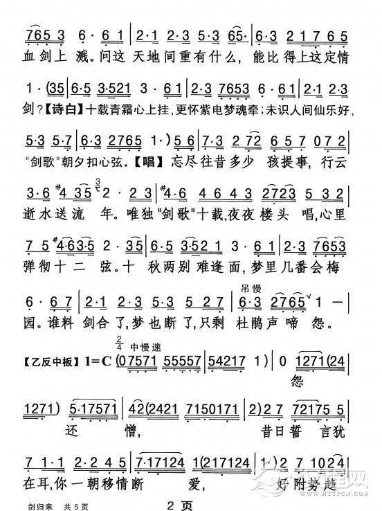 戏曲曲谱[粤剧] 胡不归之慰妻