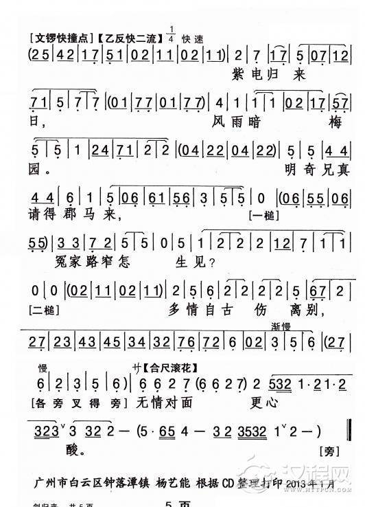 戏曲曲谱[粤剧] 浔阳江上浔阳月