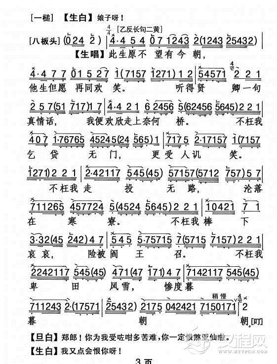 戏曲曲谱你听三两诉诉苦因(《陈三两》选段)