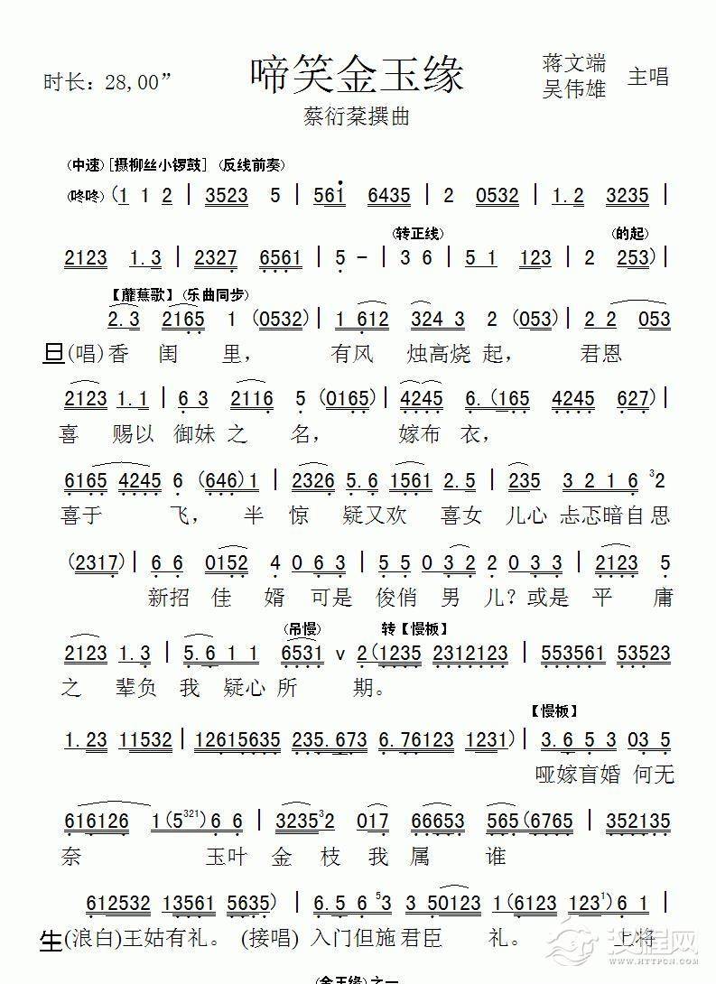戏曲曲谱掩房门穿嫁衣初试新装(《谁是新娘》选段)