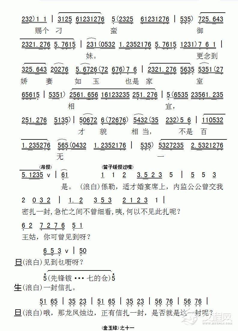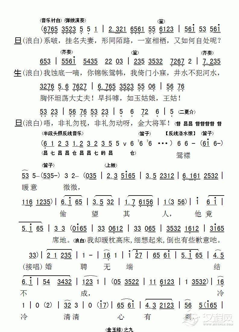 戏曲曲谱耳听得墙上挂钟声声敲(《谁是新娘》选段)