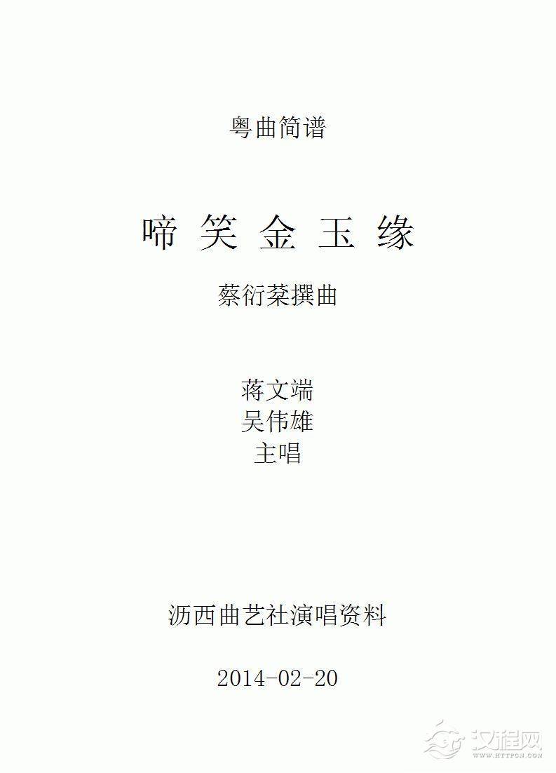戏曲曲谱[粤剧] 知音情永在