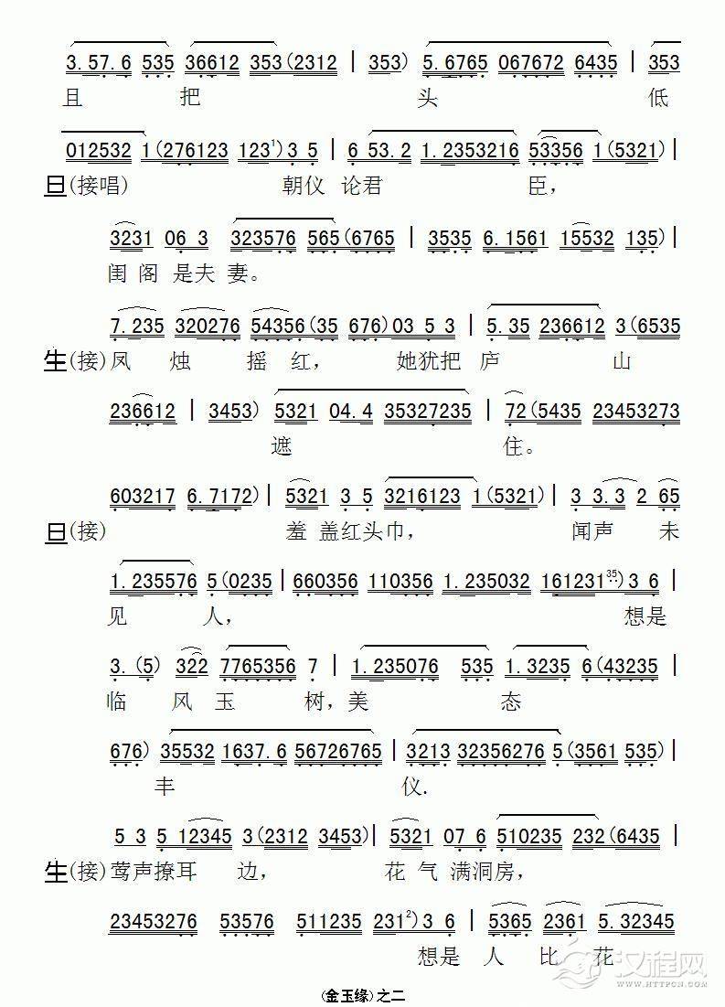 戏曲曲谱面临着眼前的情景心难平静(《谁是新娘》选段)