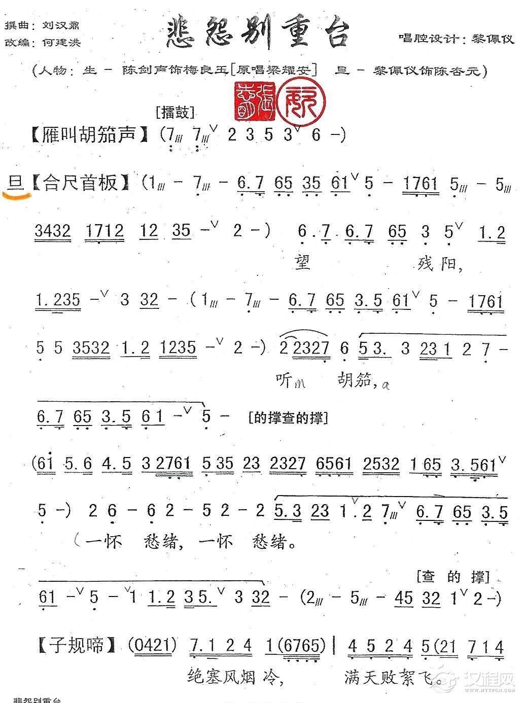 戏曲曲谱[粤剧] 魂断苏堤(工尺谱)
