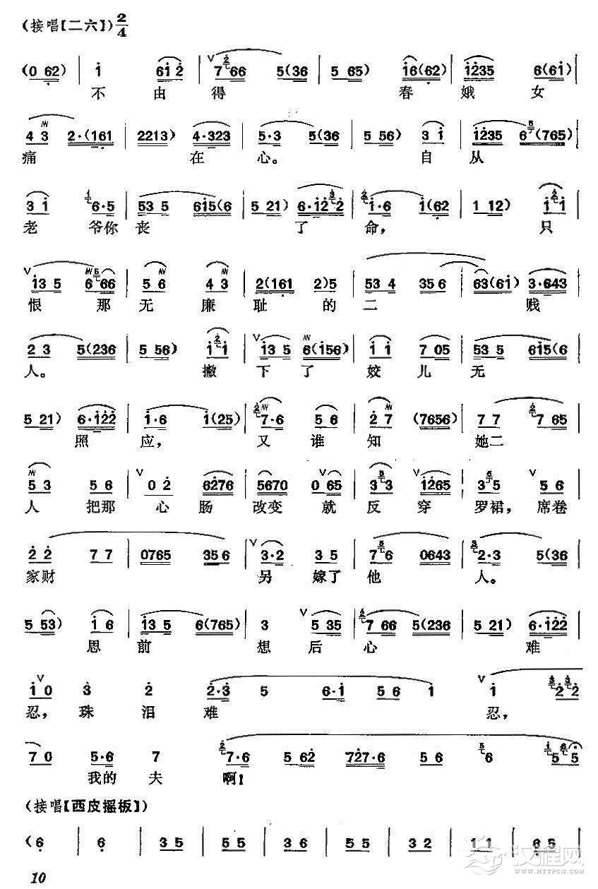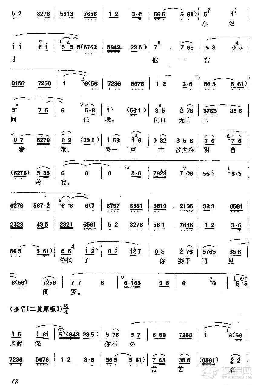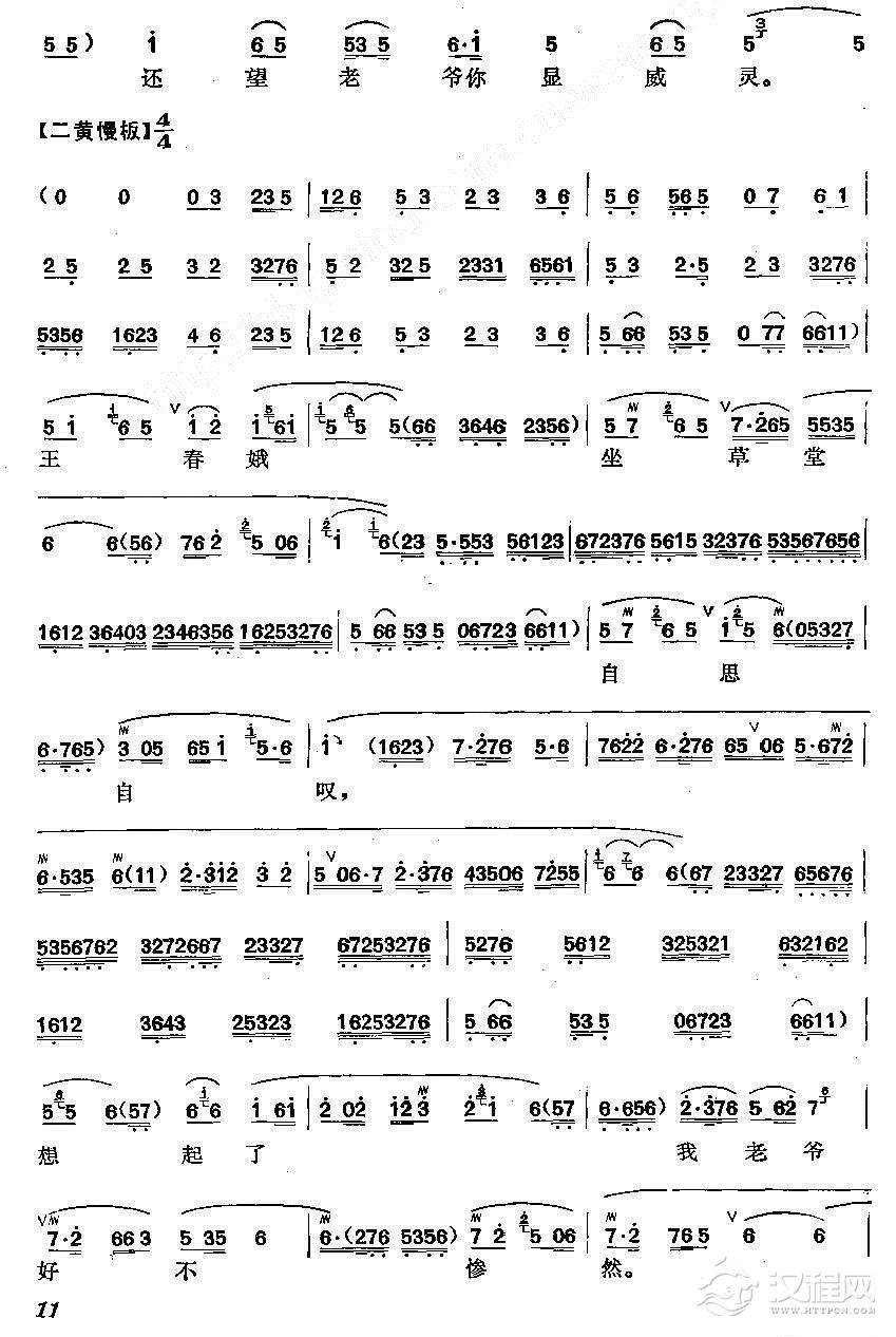 戏曲曲谱日西沉晚霞垂余晖渐退(《春秋配》选段)