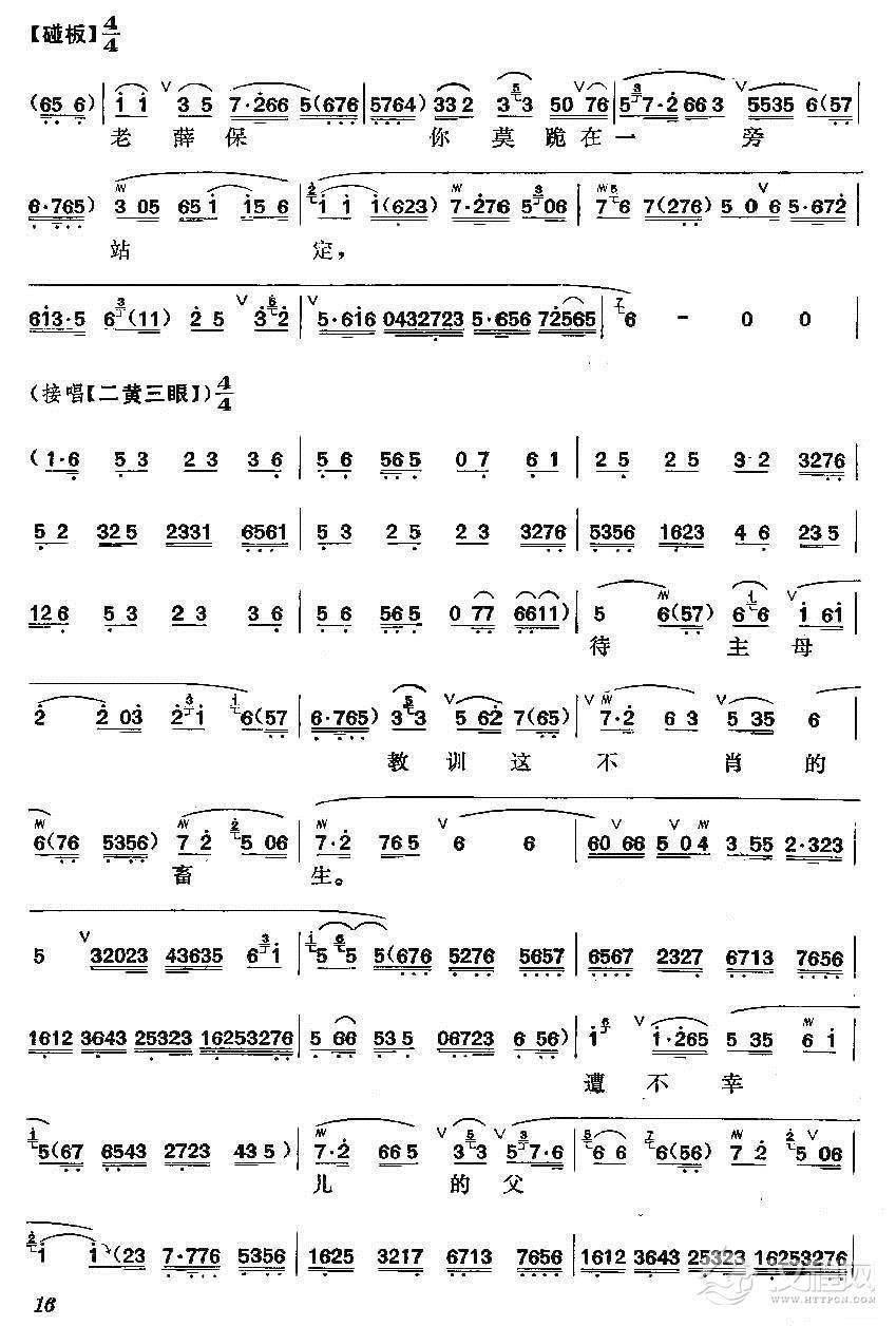 戏曲曲谱奴才全将良心昧(《清风亭》选段)