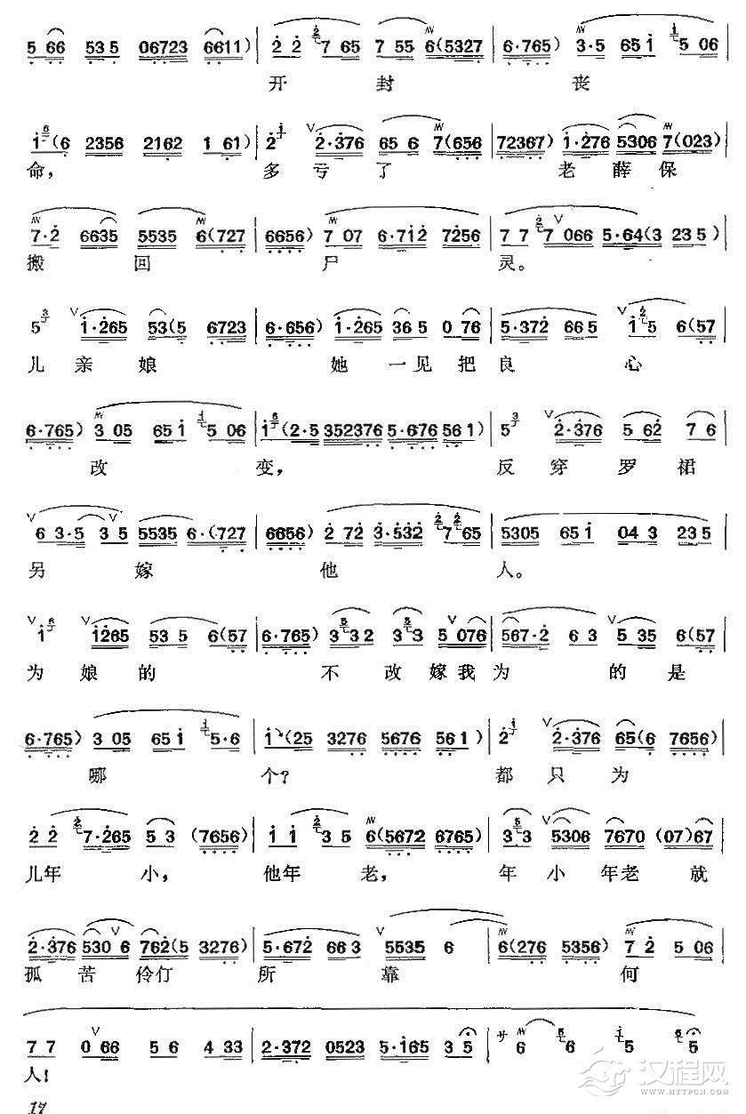戏曲曲谱送环环自由身另选佳婿(《香魂女》选段)