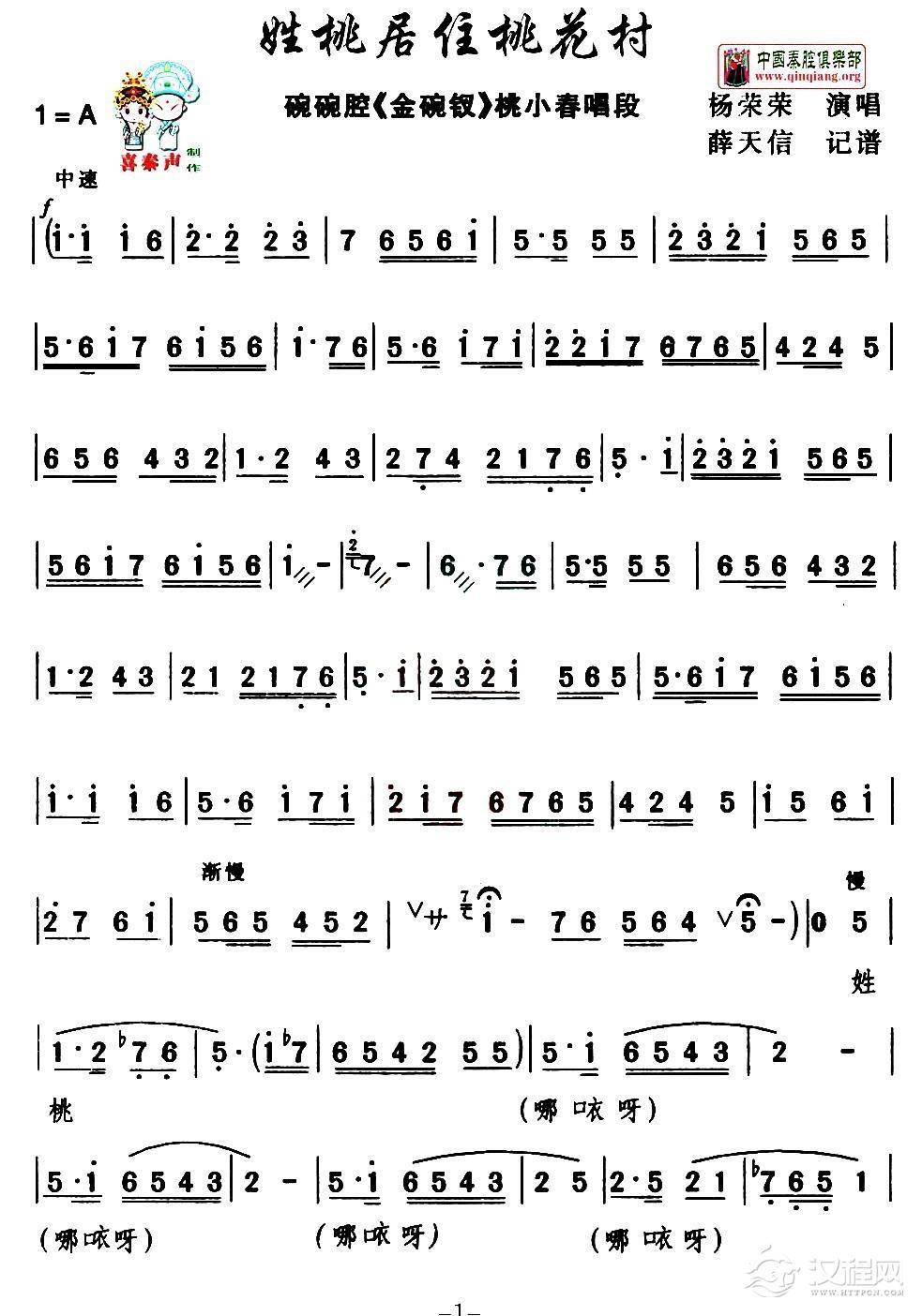 戏曲曲谱[秦腔] 姐姐同我把水看(《游西湖·游湖》李慧娘唱段)