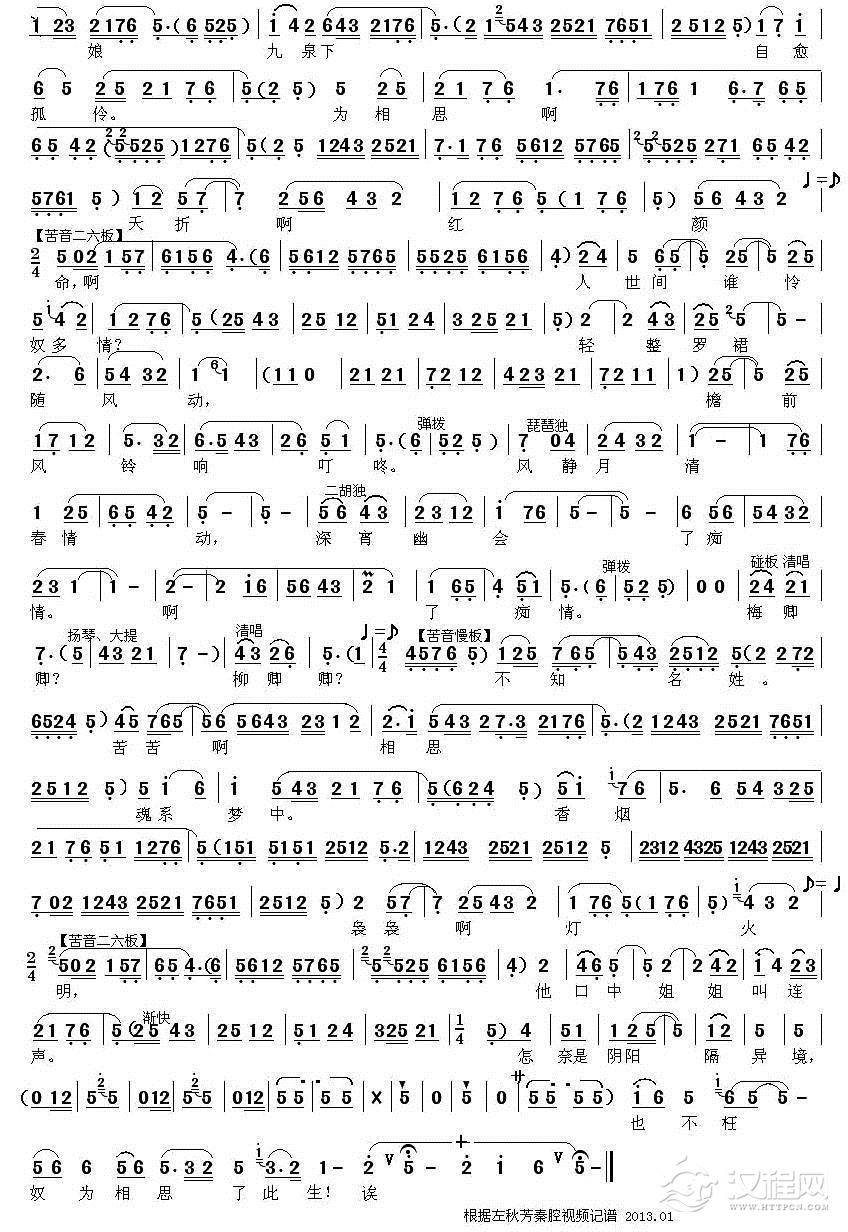 戏曲曲谱[粤剧] 啼笑金玉缘(工尺谱移植简谱)