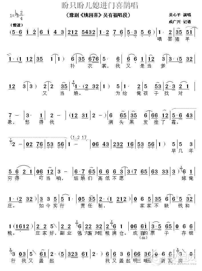 戏曲曲谱[碗碗腔] 姓桃居住桃花村(《金碗钗》桃小春唱段)