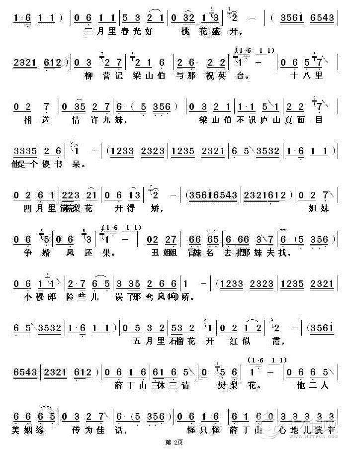 戏曲曲谱[扬剧]山伯临终