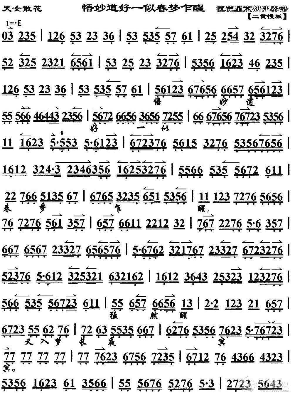 悟妙道好一似春梦乍醒(《天女散花》选段、琴谱)
