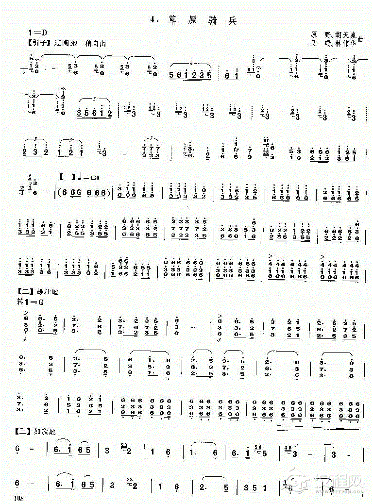 二胡谱:奔驰在千里草原