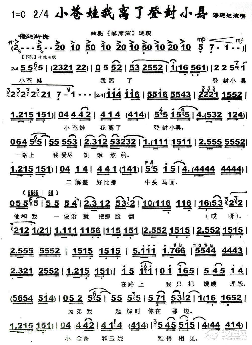 戏曲曲谱奶奶是我心中一盏灯(豫剧戏歌)