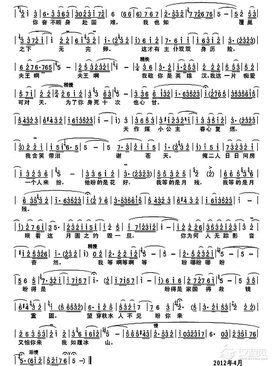 戏曲曲谱梨花颂(京歌、史依弘演唱版)