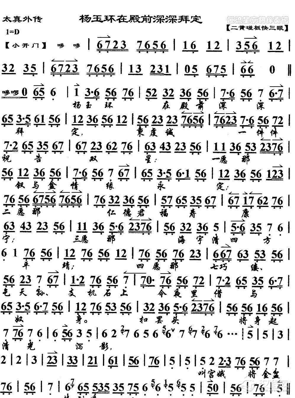戏曲曲谱听宫娥在殿上一声启请(《太真外传》杨玉环唱段、琴谱)