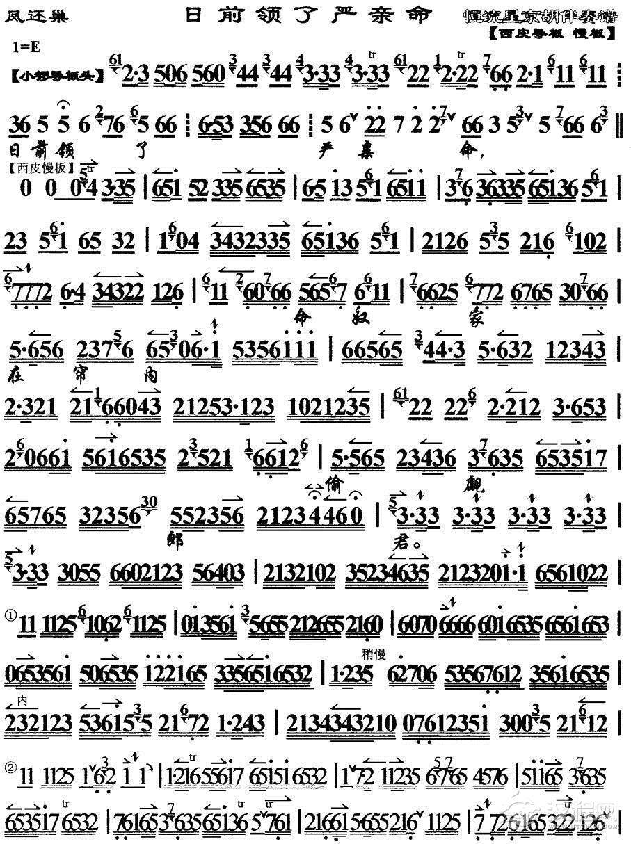戏曲曲谱如今贼兵来作乱(《凤还巢》程夫人唱段、琴谱)