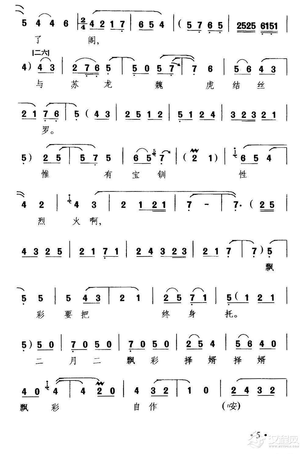 戏曲曲谱五拜姑娘(《玉簪记》选段)