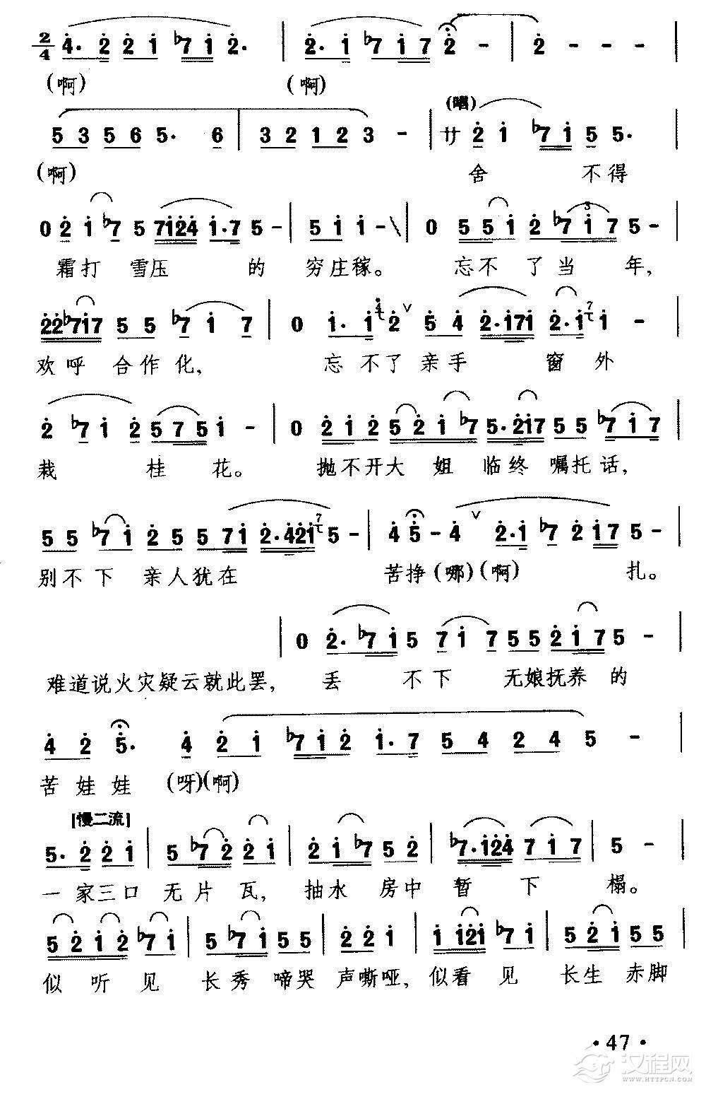 戏曲曲谱[川剧] 思亲送柴(《四川白毛女》白毛女唱段)