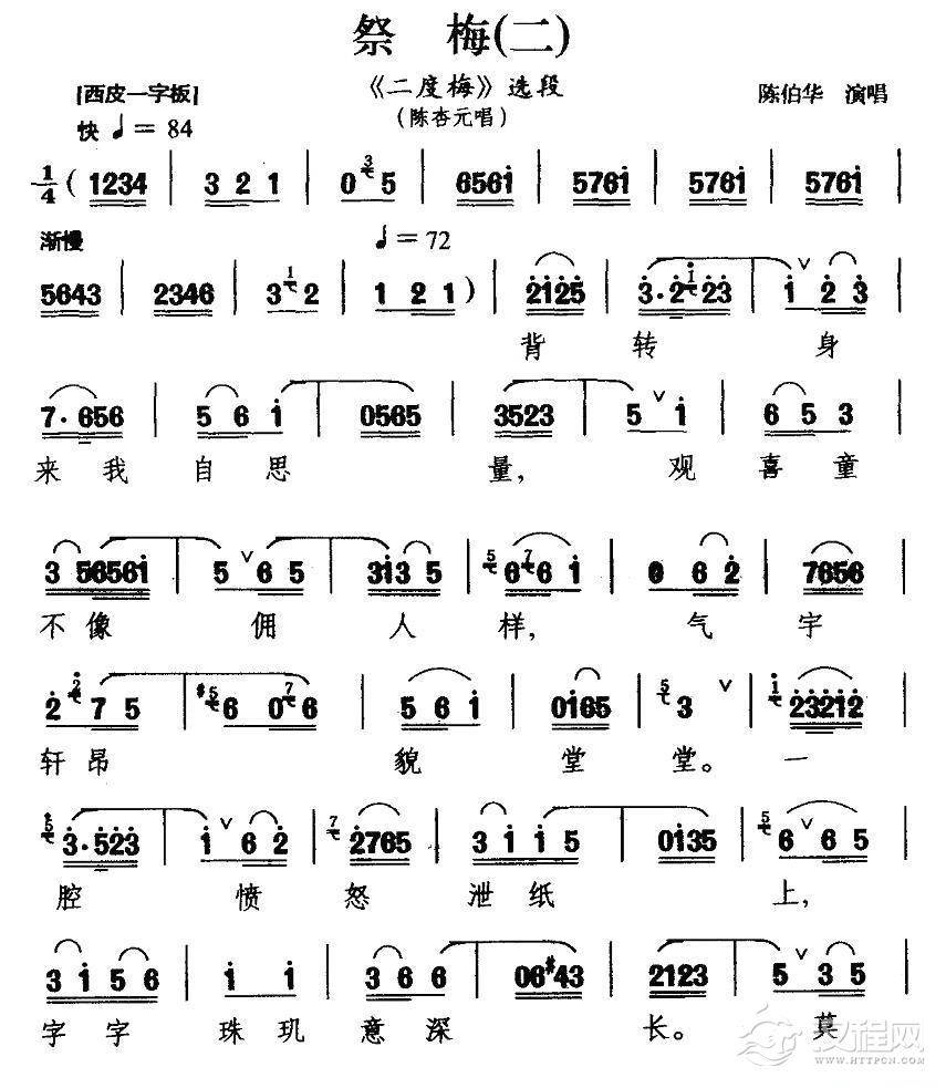 戏曲曲谱[汉剧] 祭梅(一)(《二度梅》陈杏元唱段)