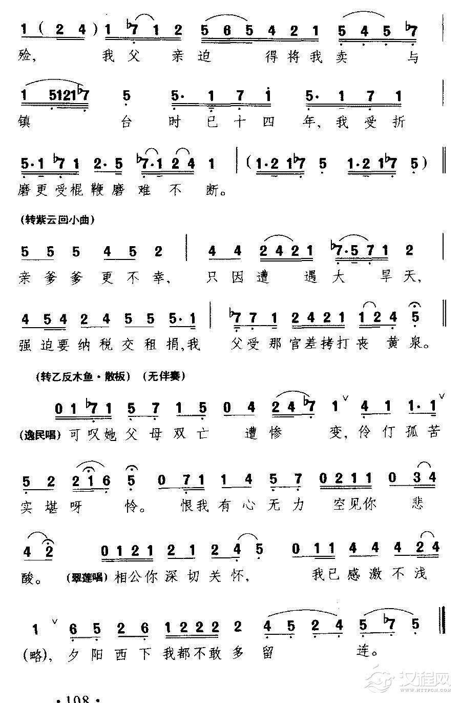 戏曲曲谱[粤剧] 柴房锁莲(《搜书院》翠莲唱段)