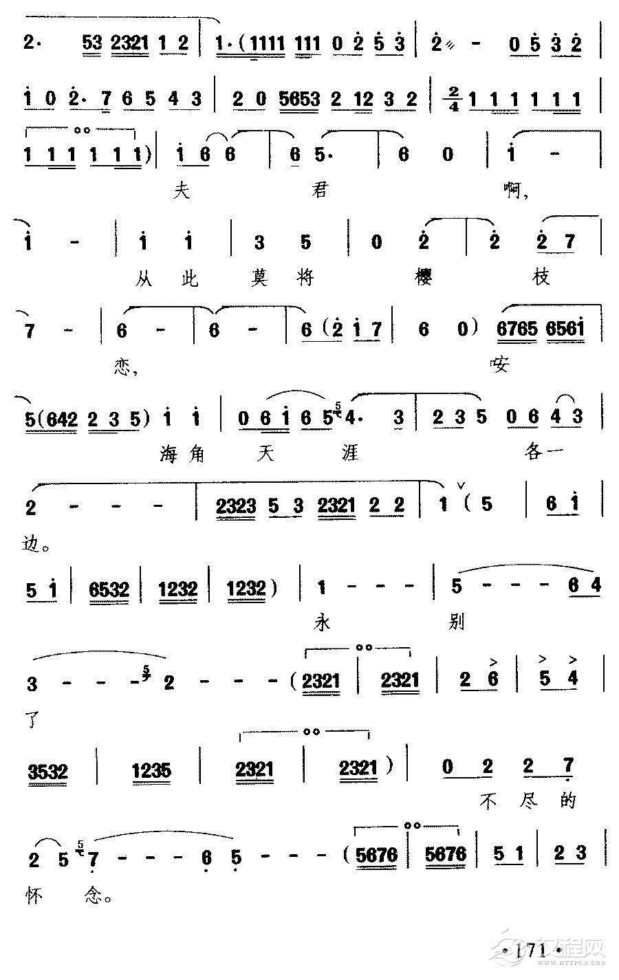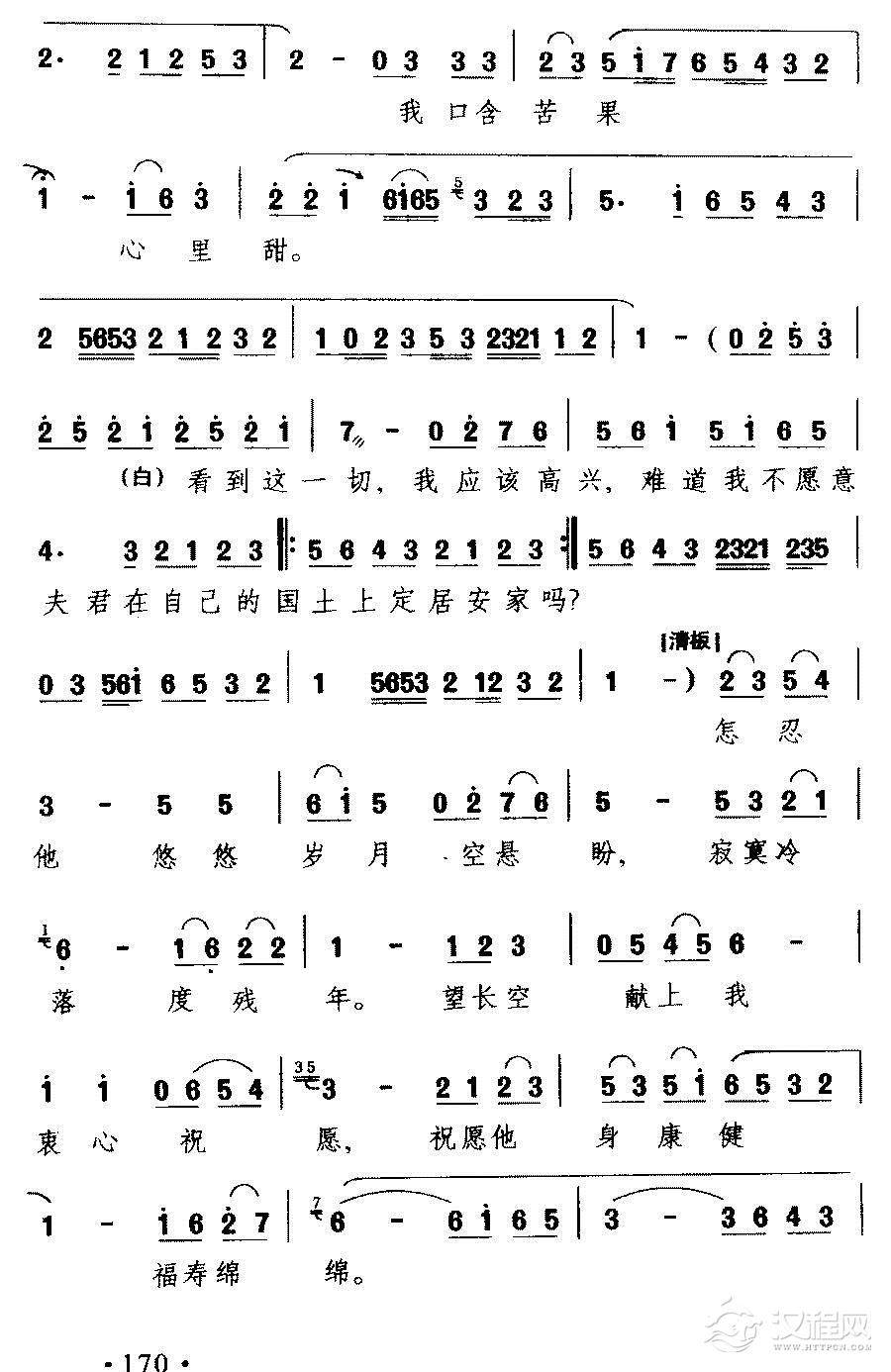 戏曲曲谱含悲忍泪(黄梅戏《天仙配》选曲)