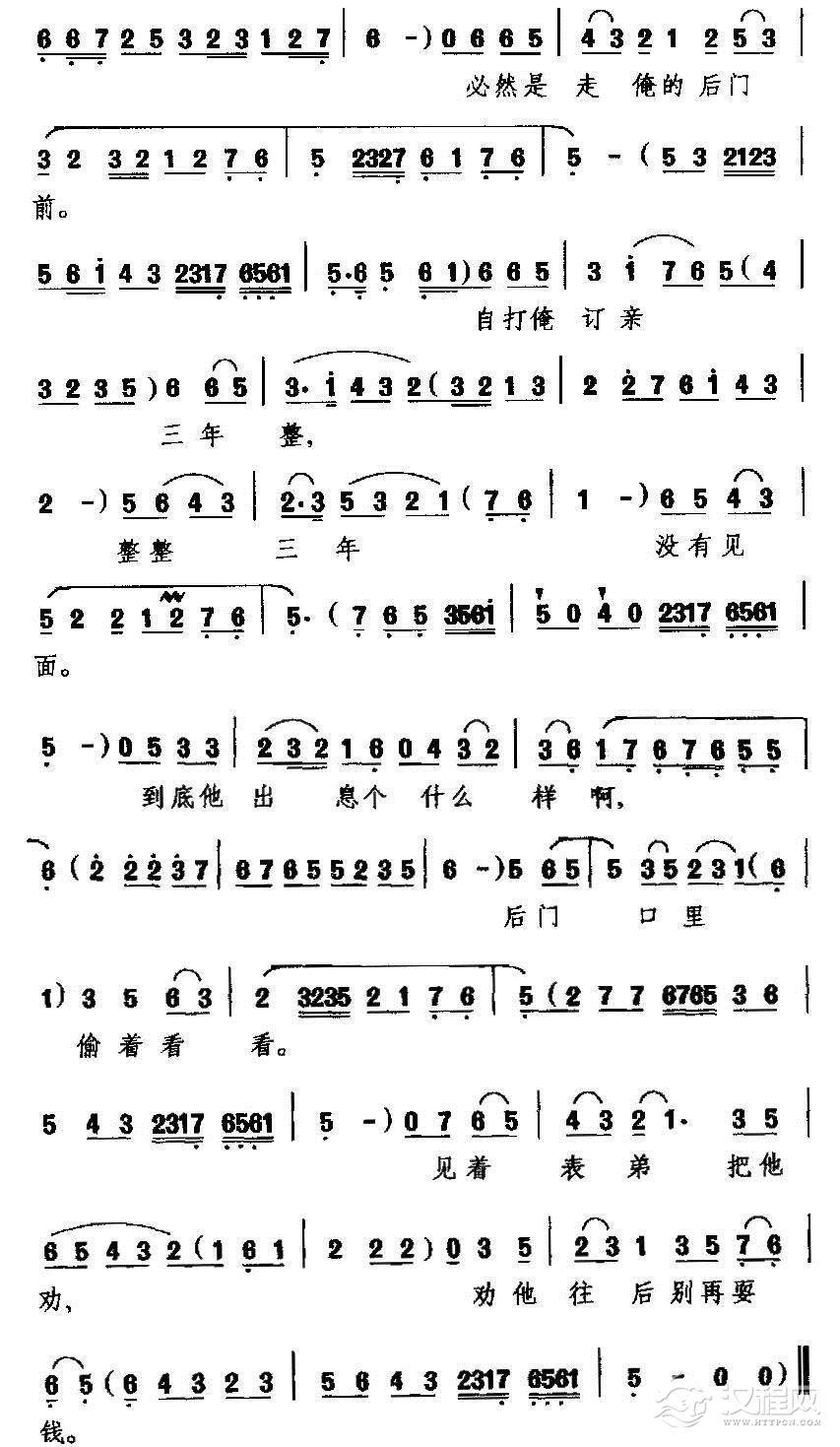 戏曲曲谱[吕剧]关房门(《李二嫂改嫁》李二嫂唱段)