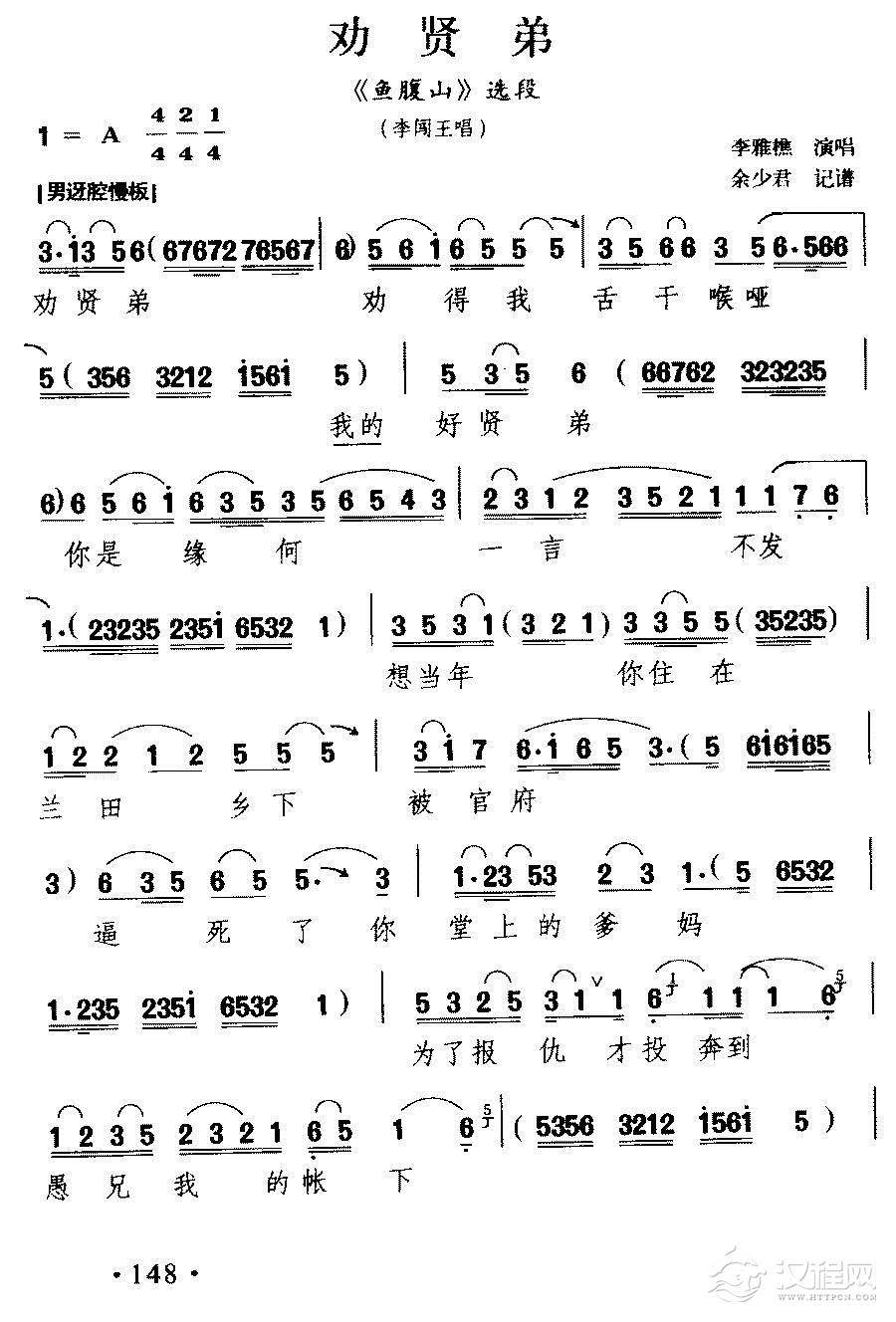 戏曲曲谱[徽剧]听谯楼花鼓频频天边皓月照人明(《磨房会》李三娘唱段)