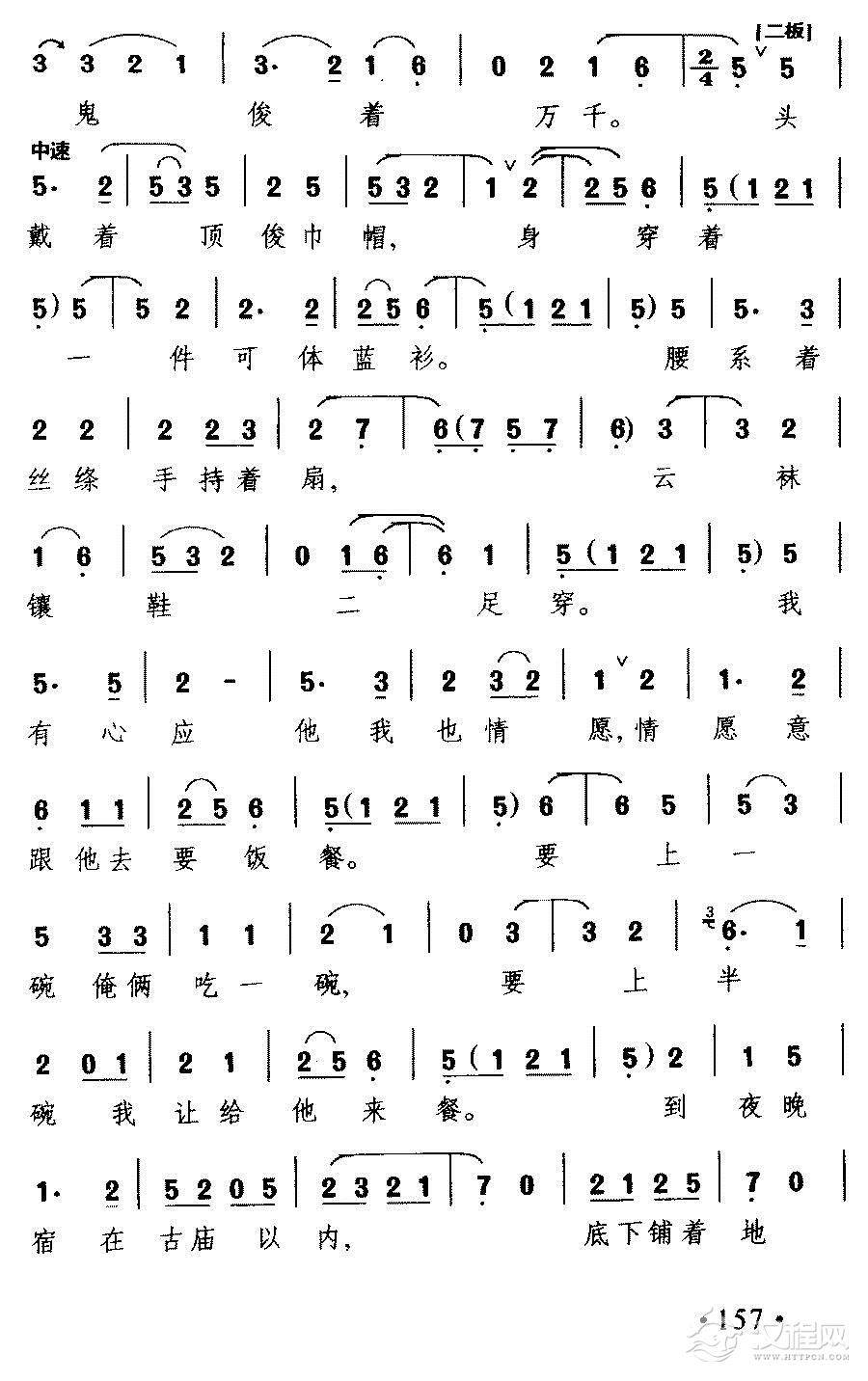 戏曲曲谱[楚剧]谯楼上打罢了二更二点(《藏舟》胡凤莲唱段)