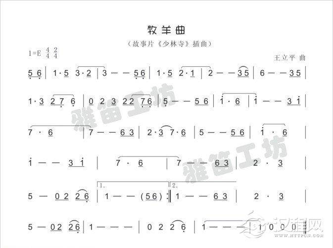 曲谱大全笛子考级练习曲《云南山歌&顾冠仁曲》竹笛六级乐曲谱