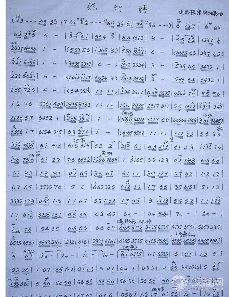 曲谱大全京胡独奏曲谱《琴缘》(周志强演奏谱)