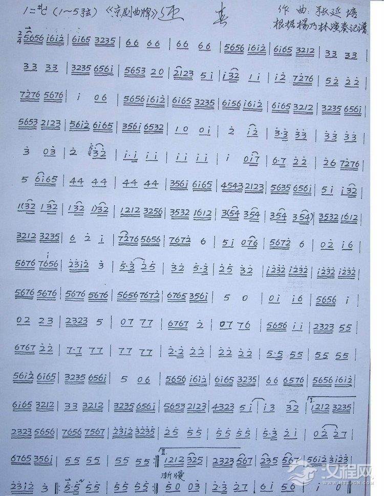 曲谱大全京胡独奏曲谱《夜深沉》京剧曲牌