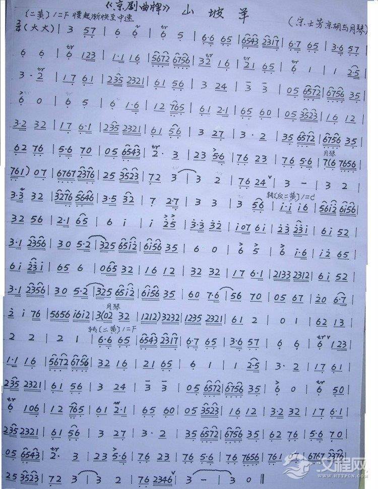 曲谱大全京胡独奏曲谱《山坡羊》(尤继舜)