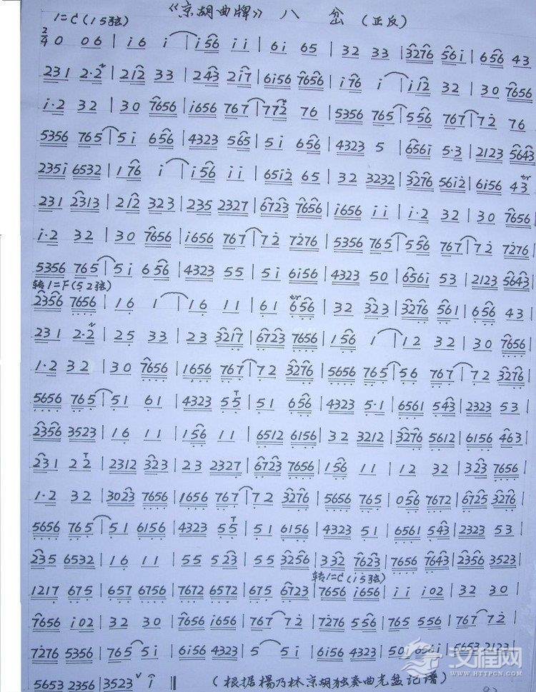 曲谱大全京胡独奏曲谱《拾全福禄之二》西皮反西皮七首联奏( 京胡: 沈玉才)