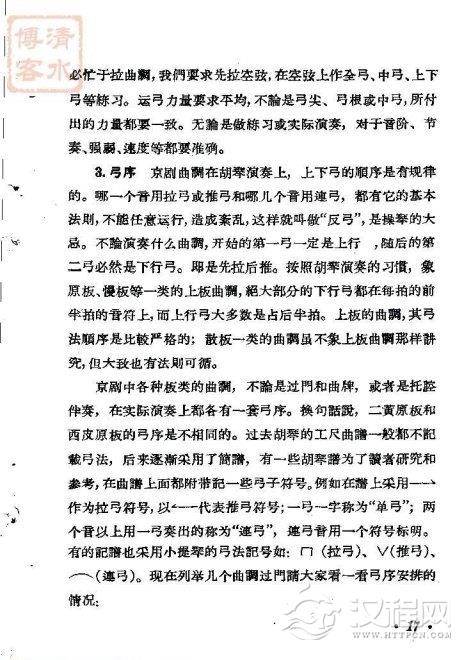 [导读]杨宝忠京胡演奏经验谈摘录:著名京胡大师杨宝忠先生,1930年代中期由老生演员改为琴师后,因超凡脱俗的琴艺而被世人赞为“胡琴四义”之一。杨先生的演奏极富激情,勇于改革创新。左手指音清脆明朗、干净利落、骨力饱满;右手功力磁实,腕力强健,特别是快尺寸的板式,快而不乱、快而有味,清楚干净,韵味十足。小编今天和大家一起分享电子版内容,一起开始学习吧……