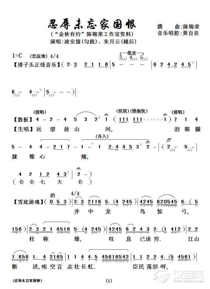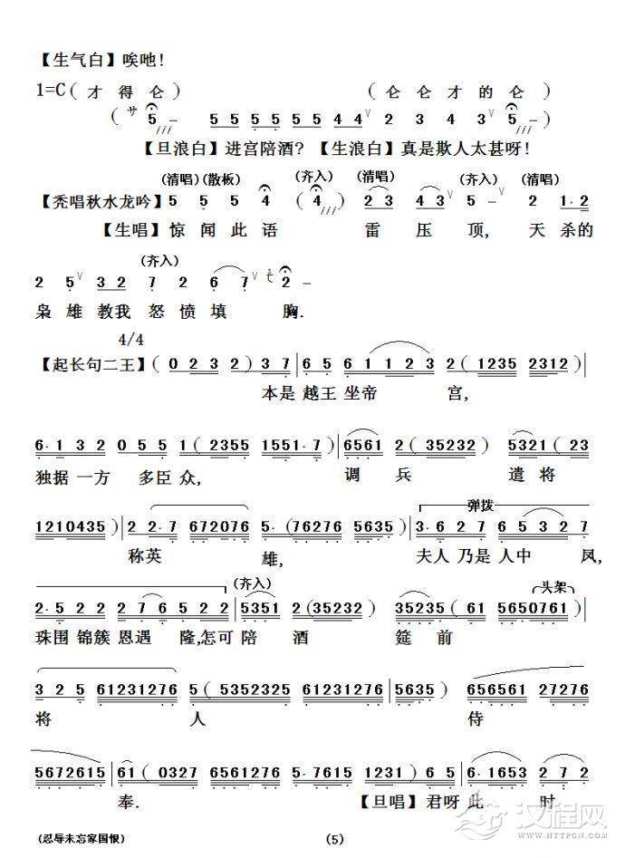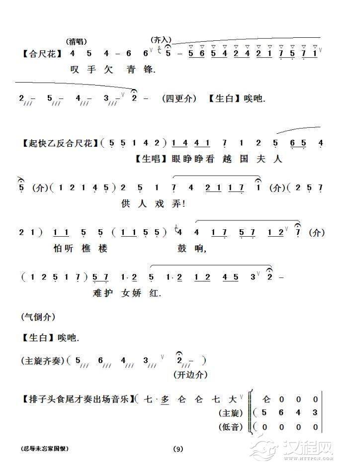 戏曲曲谱[粤剧粤曲] 壩陵泣别紫钗人