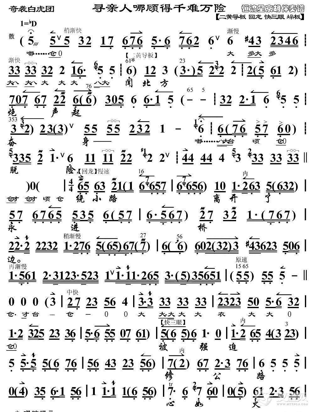 戏曲曲谱定教他白虎团马翻人仰(《奇袭白虎团》选段、琴谱)