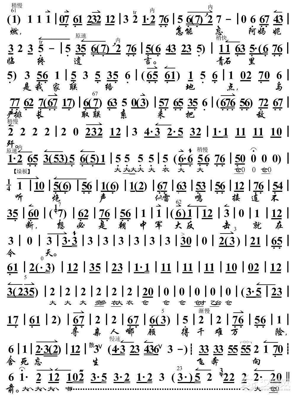 戏曲曲谱送女把军参(《红色娘子军》选段、琴谱)