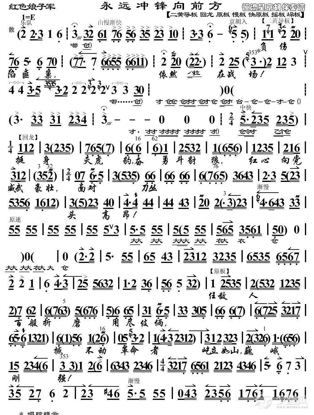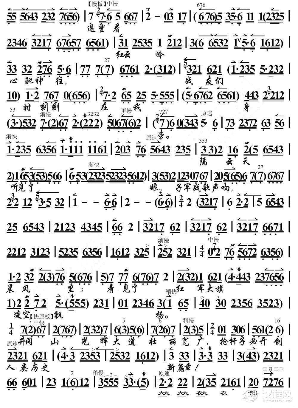 戏曲曲谱送女把军参(《红色娘子军》选段、琴谱)