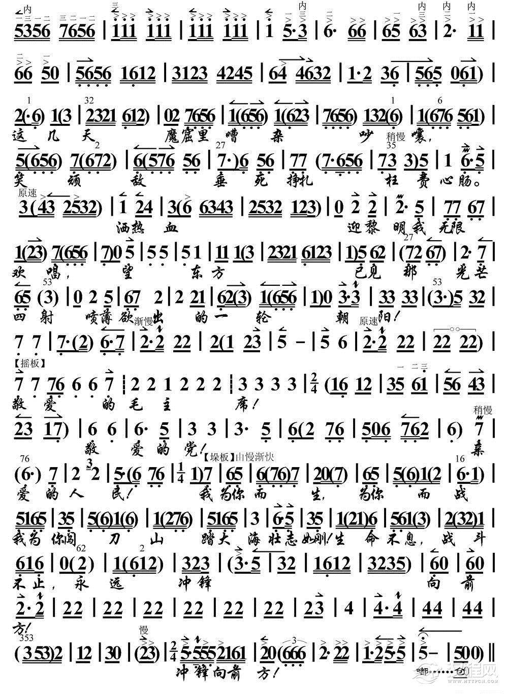 戏曲曲谱英勇奋战为人民(《红色娘子军》选段、琴谱)