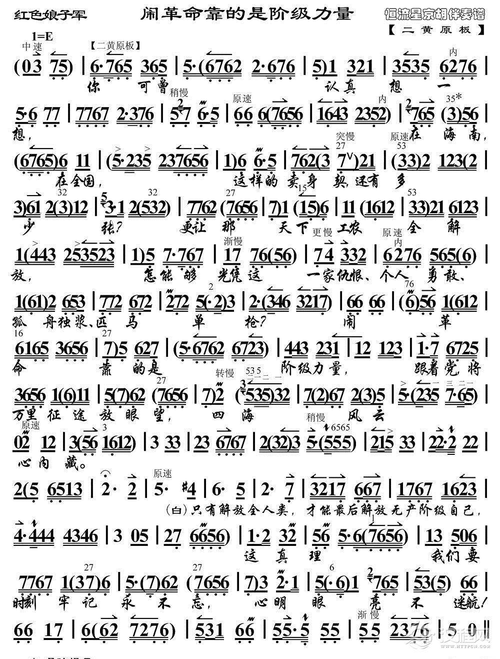 戏曲曲谱送女把军参(《红色娘子军》选段、琴谱)