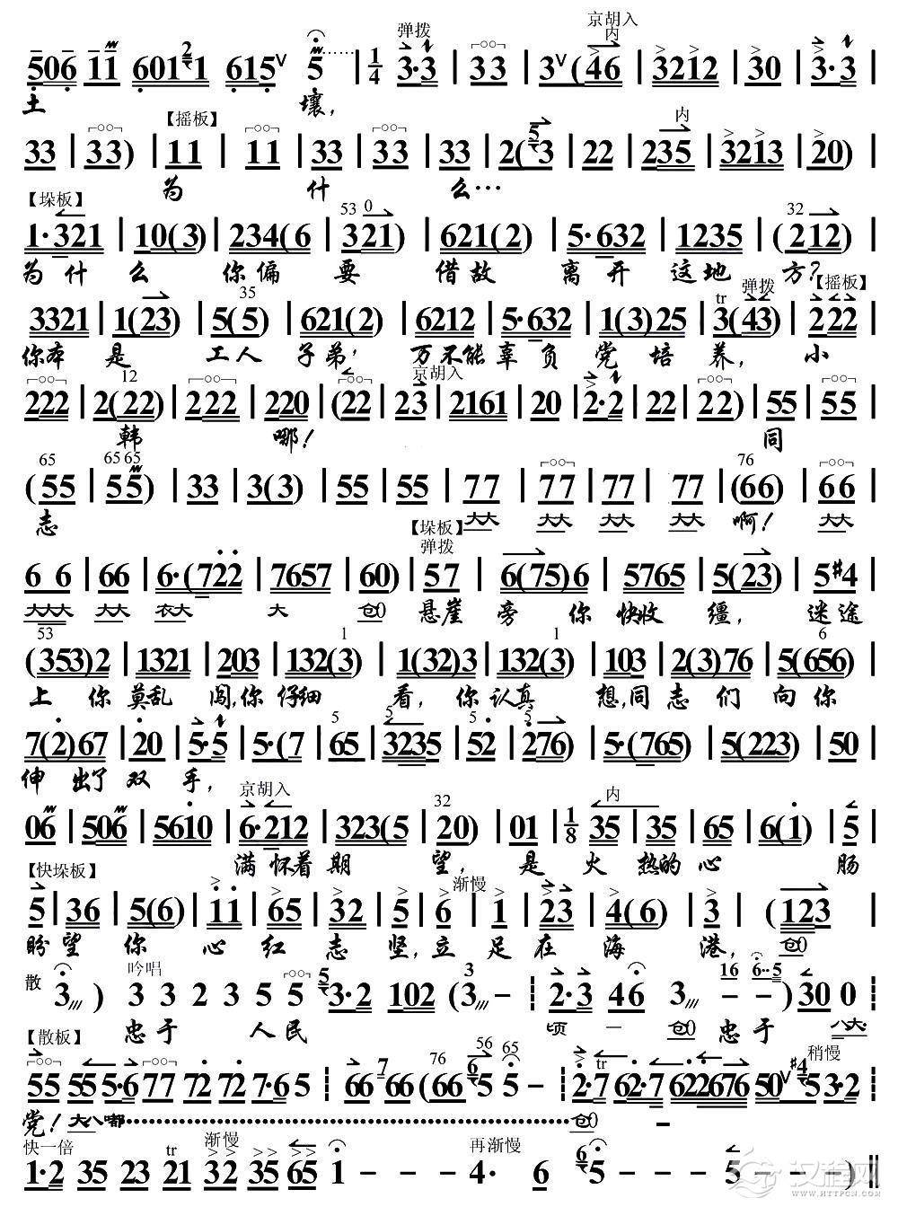 戏曲曲谱坚决战斗在海港(《海港》韩小强唱段、琴谱)